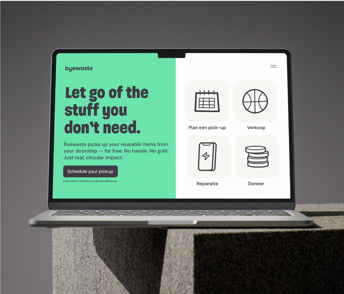 Byewaste is een Nederlandse startup opgericht rond 2019 met als missie om de circulaire economie toegankelijk en praktisch te maken voor iedereen. Via een gebruiksvriendelijke app kunnen huishoudens eenvoudig afhaalverzoeken plannen voor spullen die ze niet meer nodig hebben: zoals textiel, boeken, speelgoed, elektronica en meer, waarna Byewaste deze gratis bij je thuis ophaalt en richt op hergebruik, donatie of recycling via duurzame partners.