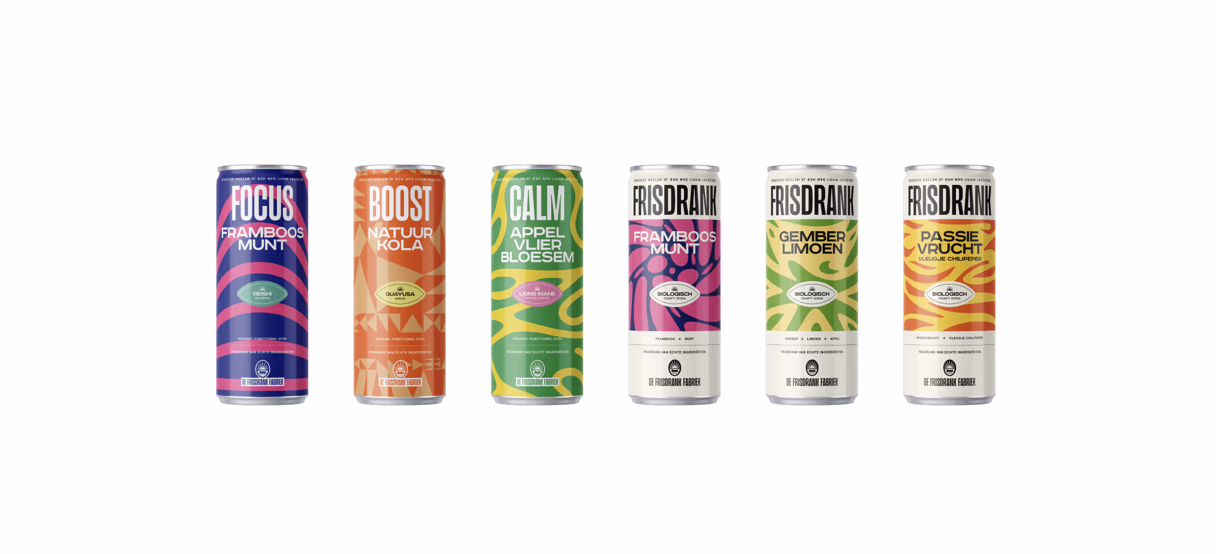 We onderzochten consumententrends, winkelgedrag en merkperceptie. Die data vertaalden we naar een tweelagenmerk: de classic line voor dorstlessers en de longevity line voor doorpakkers. Eén merk-DNA, twee heldere beloftes. Alles visueel én verbaal perfect in balans. De Frisdrankfabriek is geen standaard newcomer, maar een category challenger. Gebouwd op data. Gedragen door strategie. Aangestuurd door design dat blijft hangen.